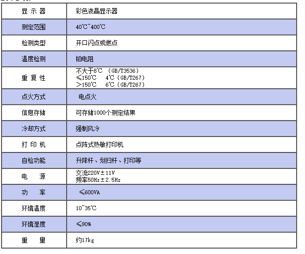 KLK301開口閃點自動測定儀是采用ARM微處理器技術(shù)設(shè)計的一款新型閃點自動測定儀。該儀器采用大屏幕彩色液晶顯示,中文菜單觸摸屏控制,完全電點火方式。具有自動升溫,自動劃掃,自動點火,標(biāo)準(zhǔn)程序適時選擇,溫度自動跟蹤顯示,自動鎖定閃點值并自動打印結(jié)果,大氣壓校正和強(qiáng)制風(fēng)冷功能。 該儀器結(jié)構(gòu)合理、操作簡單,測定結(jié)果穩(wěn)定可靠是開口閃點測定的理想儀器,儀器廣泛運(yùn)用于電力、石油、化工、科研等部門。 符合標(biāo)準(zhǔn)GB/T3536-2008、GB/T267-88。 技術(shù)參數(shù):