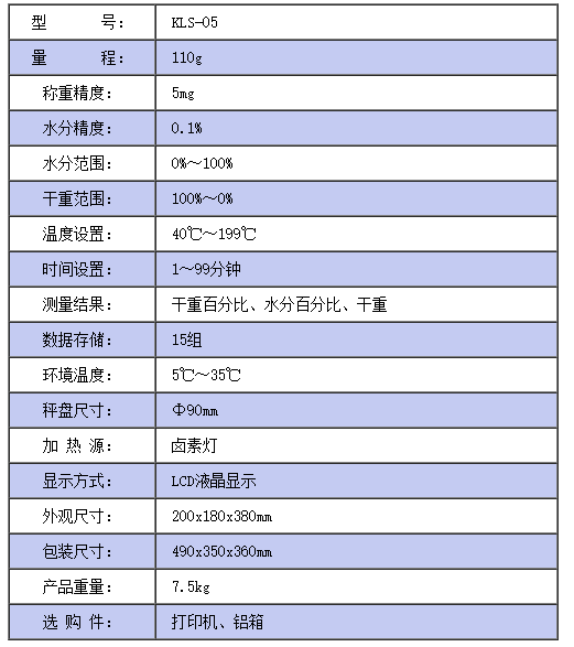 鹵素水分測定儀KLS-05
