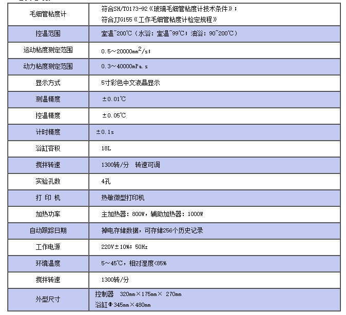 儀器符合GB/T265標(biāo)準(zhǔn),也適用GB1841標(biāo)準(zhǔn)所規(guī)定的塑料樹脂等其他產(chǎn)品的運動粘度。儀器采用先進的單片機、彩色中文液晶顯示,溫度控制準(zhǔn)確、精度高,自動計時、自動計算運動粘度和動力粘度、自動打印測定結(jié)果,外形結(jié)果新穎,是一款國內(nèi)較先進的運動粘度測定儀。